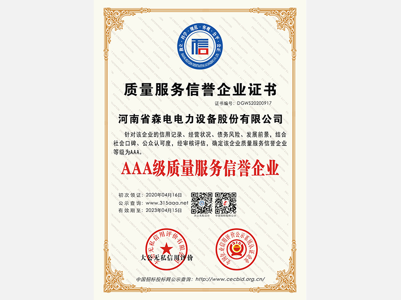 森電電力產(chǎn)品使用壽命可達(dá)30年,并提供對(duì)應(yīng)的**維護(hù)服務(wù),讓售后無(wú)憂
